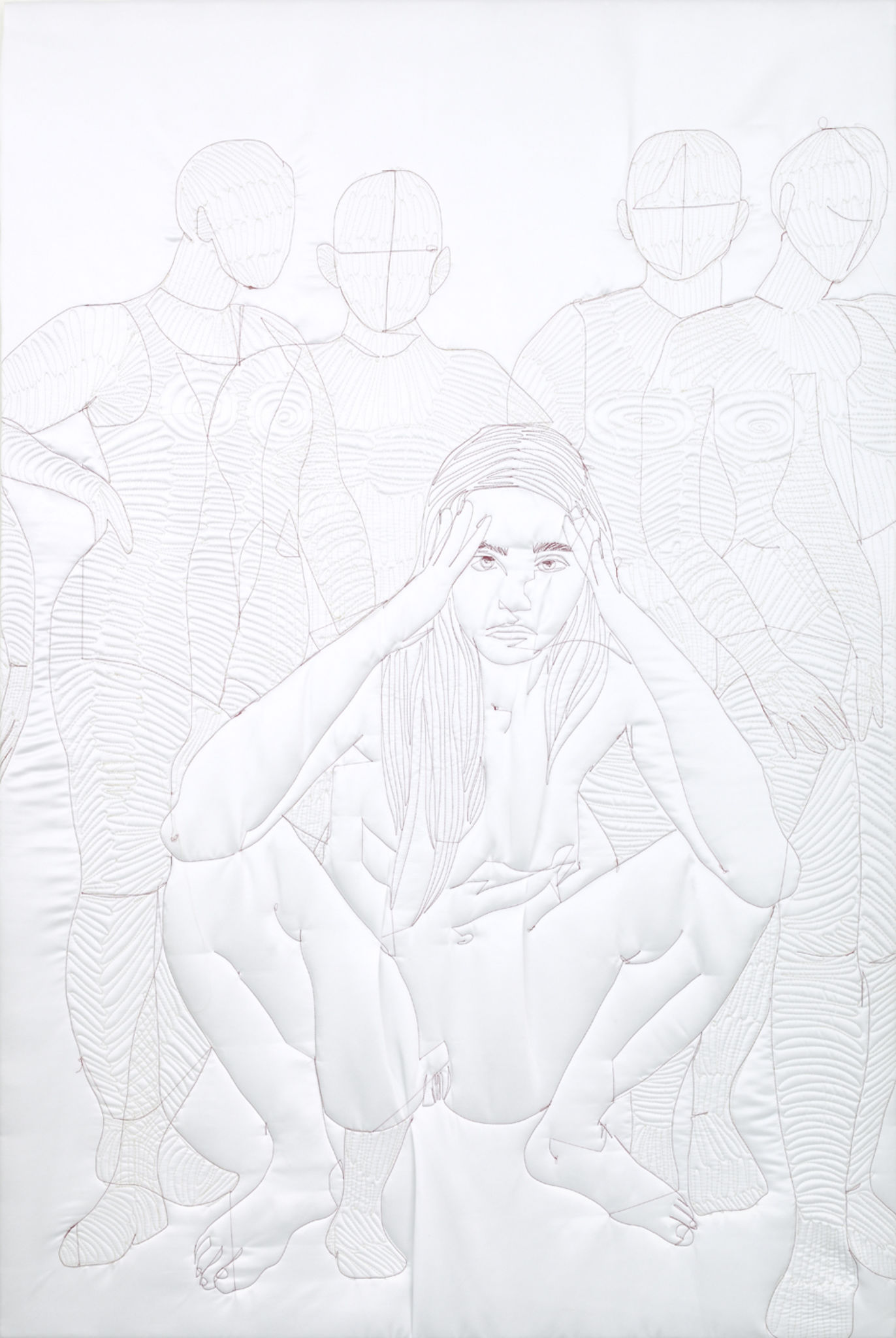 Lucie Rosická's work explores the intersection between traditional and contemporary techniques. Her works are a mixture of the hand-making that her grandmother taught her, classical painting and her newfound passion for fabrics and materials. The result is a unique style of figurative art that evokes personal memories and emotions. She completed a work placement in Turin, Italy, where she discovered the rich history of materials and fashion. This experience stimulated her interest in elevating textile techniques to fine art. In addition, she participated in a residency in New York where she found the freedom to experiment and develop her own artistic vision. To create her characters, she uses various fabrics, from high-end materials to found fabrics from second-hand shops. Through this medium, she is able to capture the essence of a place or moment in time and convey her personal experiences. She believes that the tactile nature of fabrics allows for a more intimate connection with the viewer, as everyone has a personal relationship with textiles.