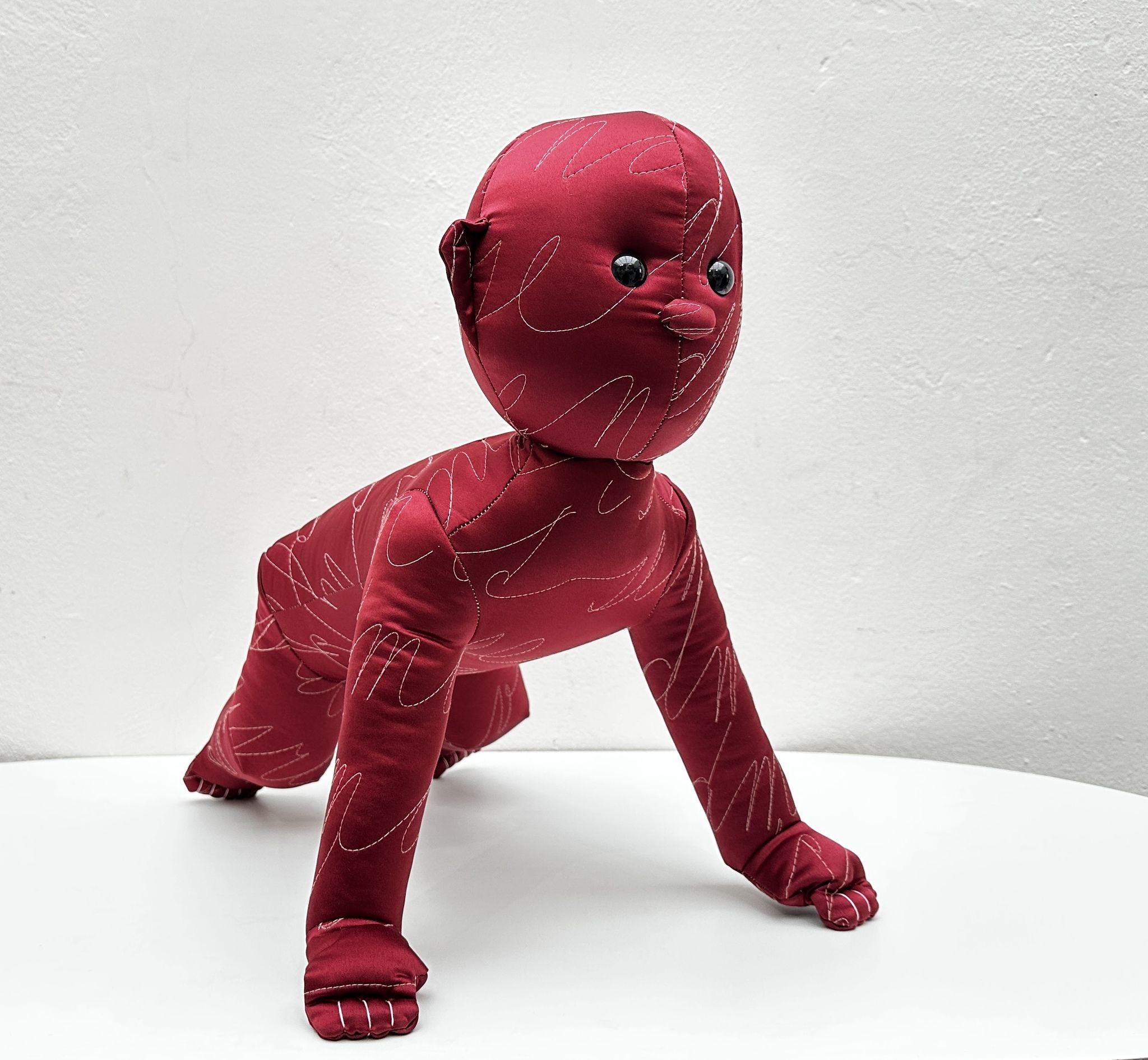 Lucie Rosická's work explores the intersection between traditional and contemporary techniques. Her works are a mixture of the hand-making that her grandmother taught her, classical painting and her newfound passion for fabrics and materials. The result is a unique style of figurative art that evokes personal memories and emotions. She completed a work placement in Turin, Italy, where she discovered the rich history of materials and fashion. This experience stimulated her interest in elevating textile techniques to fine art. In addition, she participated in a residency in New York where she found the freedom to experiment and develop her own artistic vision. To create her characters, she uses various fabrics, from high-end materials to found fabrics from second-hand shops. Through this medium, she is able to capture the essence of a place or moment in time and convey her personal experiences. She believes that the tactile nature of fabrics allows for a more intimate connection with the viewer, as everyone has a personal relationship with textiles.