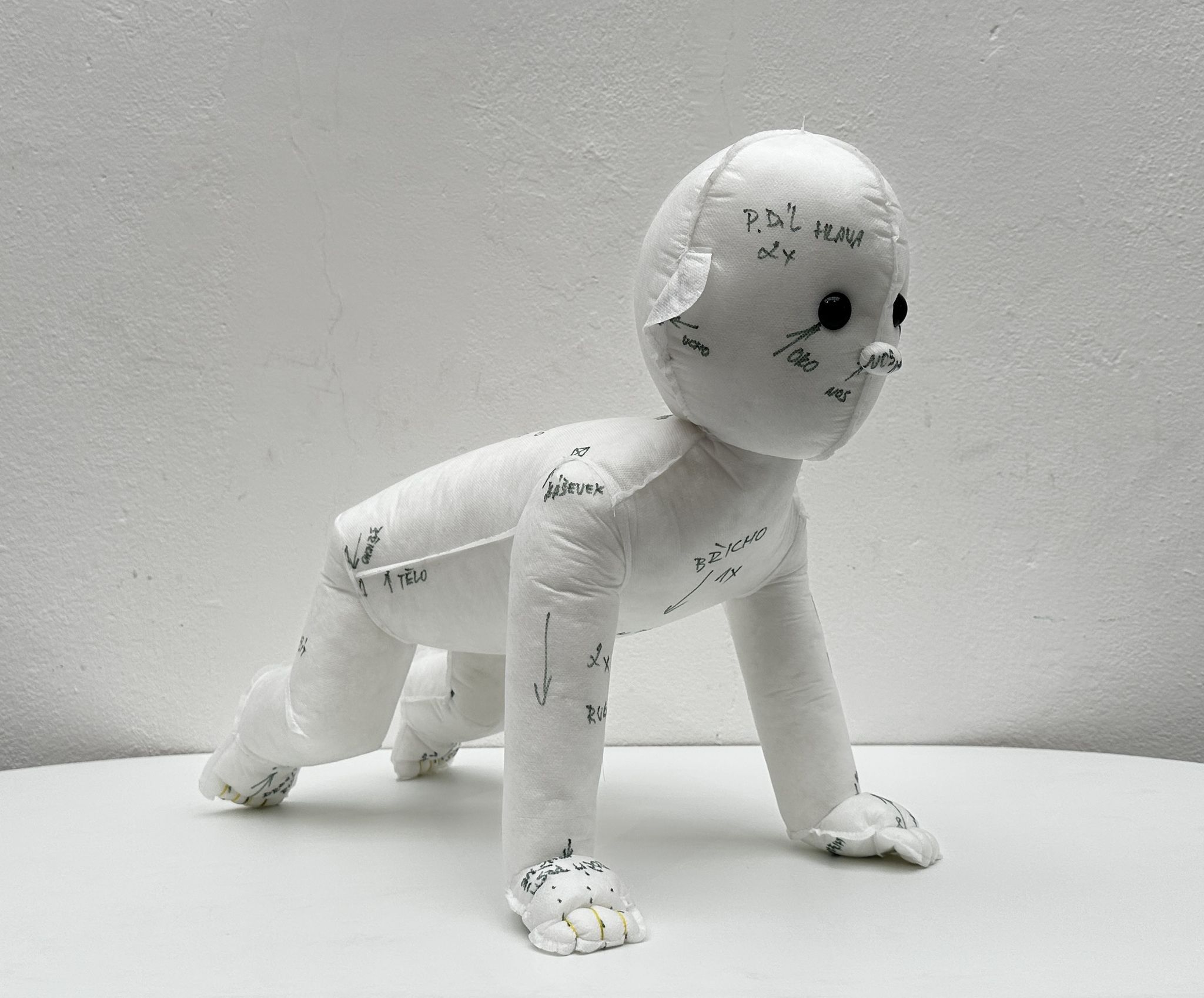 Lucie Rosická's work explores the intersection between traditional and contemporary techniques. Her works are a mixture of the hand-making that her grandmother taught her, classical painting and her newfound passion for fabrics and materials. The result is a unique style of figurative art that evokes personal memories and emotions. She completed a work placement in Turin, Italy, where she discovered the rich history of materials and fashion. This experience stimulated her interest in elevating textile techniques to fine art. In addition, she participated in a residency in New York where she found the freedom to experiment and develop her own artistic vision. To create her characters, she uses various fabrics, from high-end materials to found fabrics from second-hand shops. Through this medium, she is able to capture the essence of a place or moment in time and convey her personal experiences. She believes that the tactile nature of fabrics allows for a more intimate connection with the viewer, as everyone has a personal relationship with textiles.