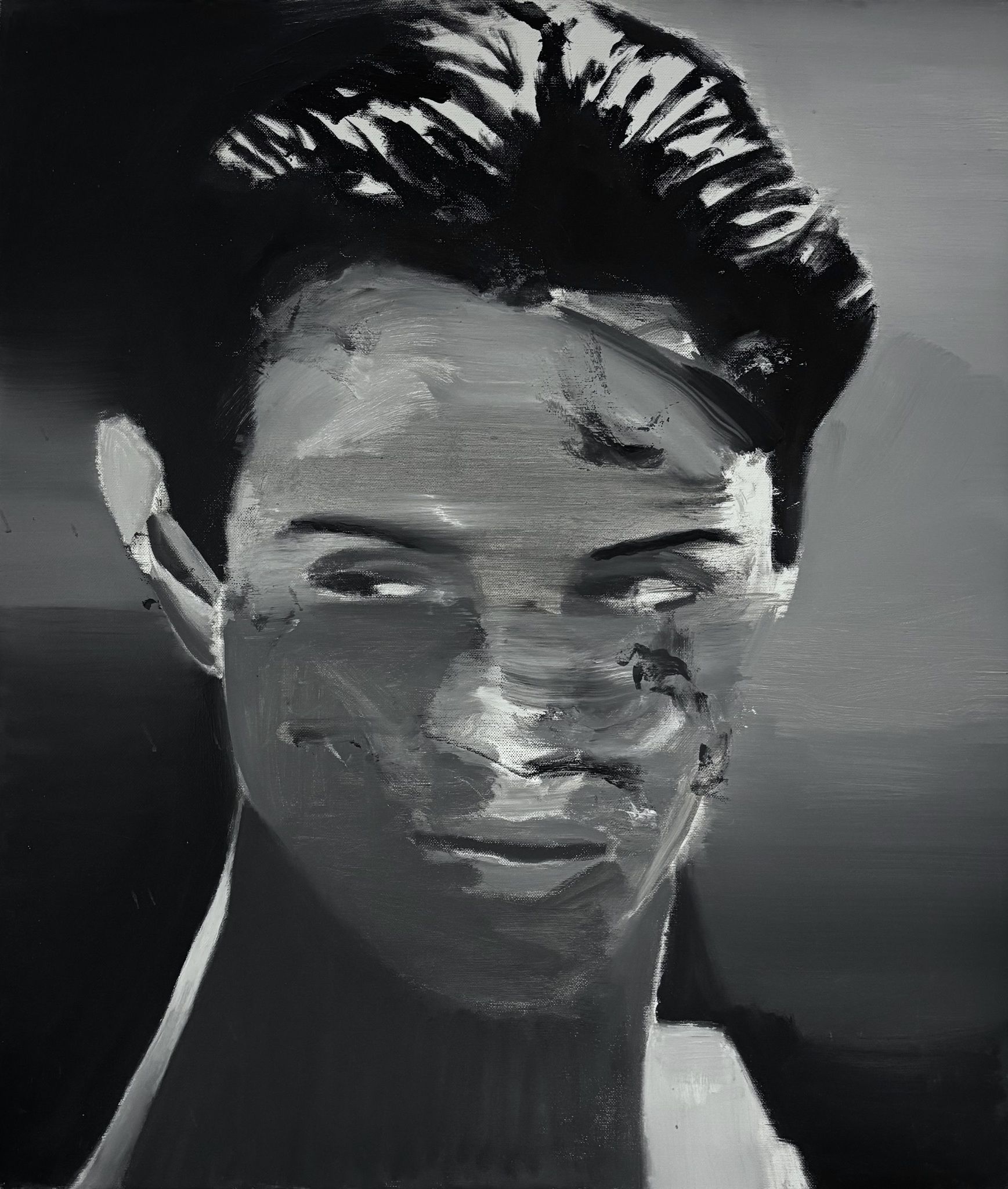 A graduate of the Academy of Fine Arts in Prague (2004–2010, drawing, prof. Jitka Svobodová), Jakub Hubálek creates paintings made on the basis his foundation in drawing, a tendency that is reflected in a fundamental tension between an inclination towards black-and-white (or monochrome) painting and towards distinctive narratives that often abandon the external level of painted illusion in order to model and transform the painting’s very visual vocabulary. This, in fact, is the reason for the frequent presence of new shapes in his work, which reflect subconscious situations requiring the combination of memory, recollections, and their reassessment from a contemporary viewpoint. Hubálek’s paintings often recall old family photographs characterized by an anonymous, impersonal, or vexing memory. Hubálek often works with open-ended gestures and intimations. He gives the form room for possible future movement. He himself exists on the boundary between figuration and abstract art. In 2020, Trafo Gallery published a book on the occasion of his eponymous exhibition Black and White Summer.