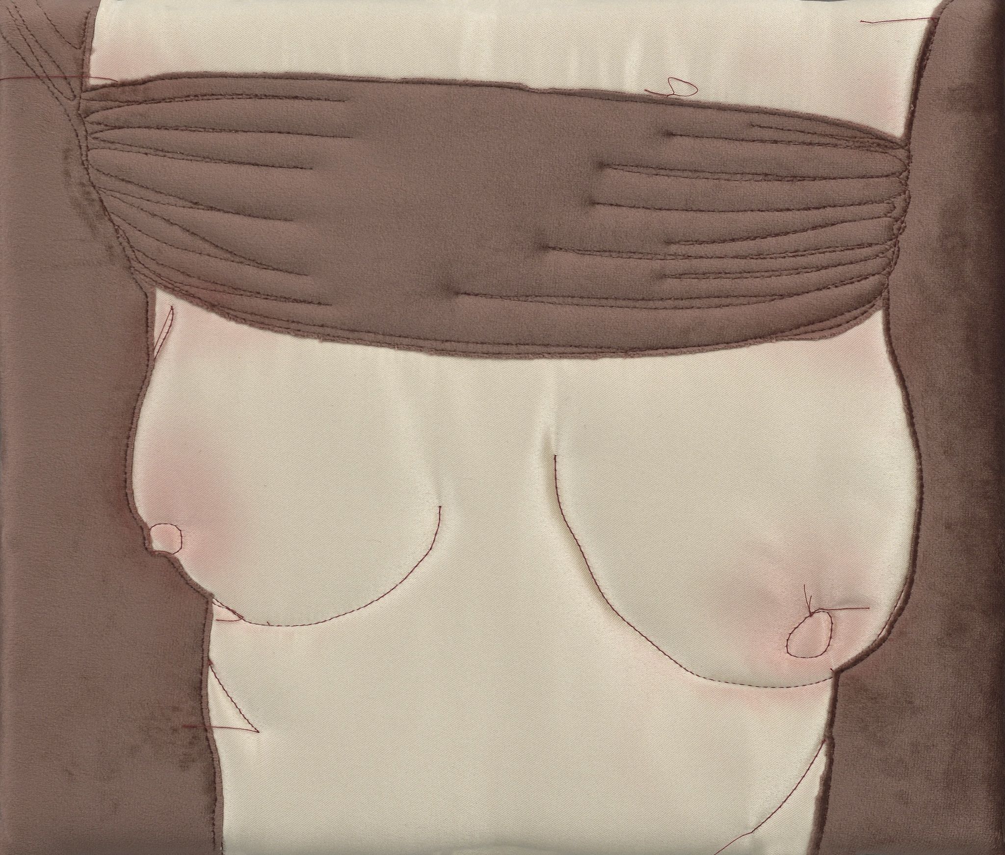 ručně prošívaný satén, samet a akryl