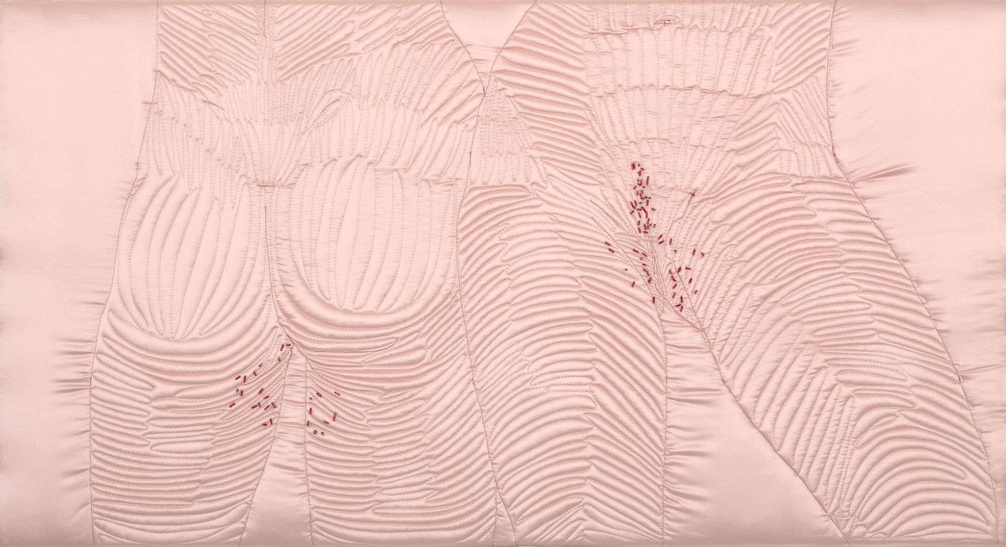 ručně prošívaný satén s výšivkou ze skleněných korálků