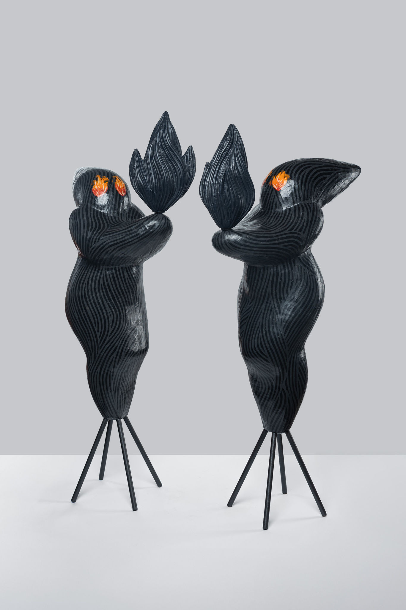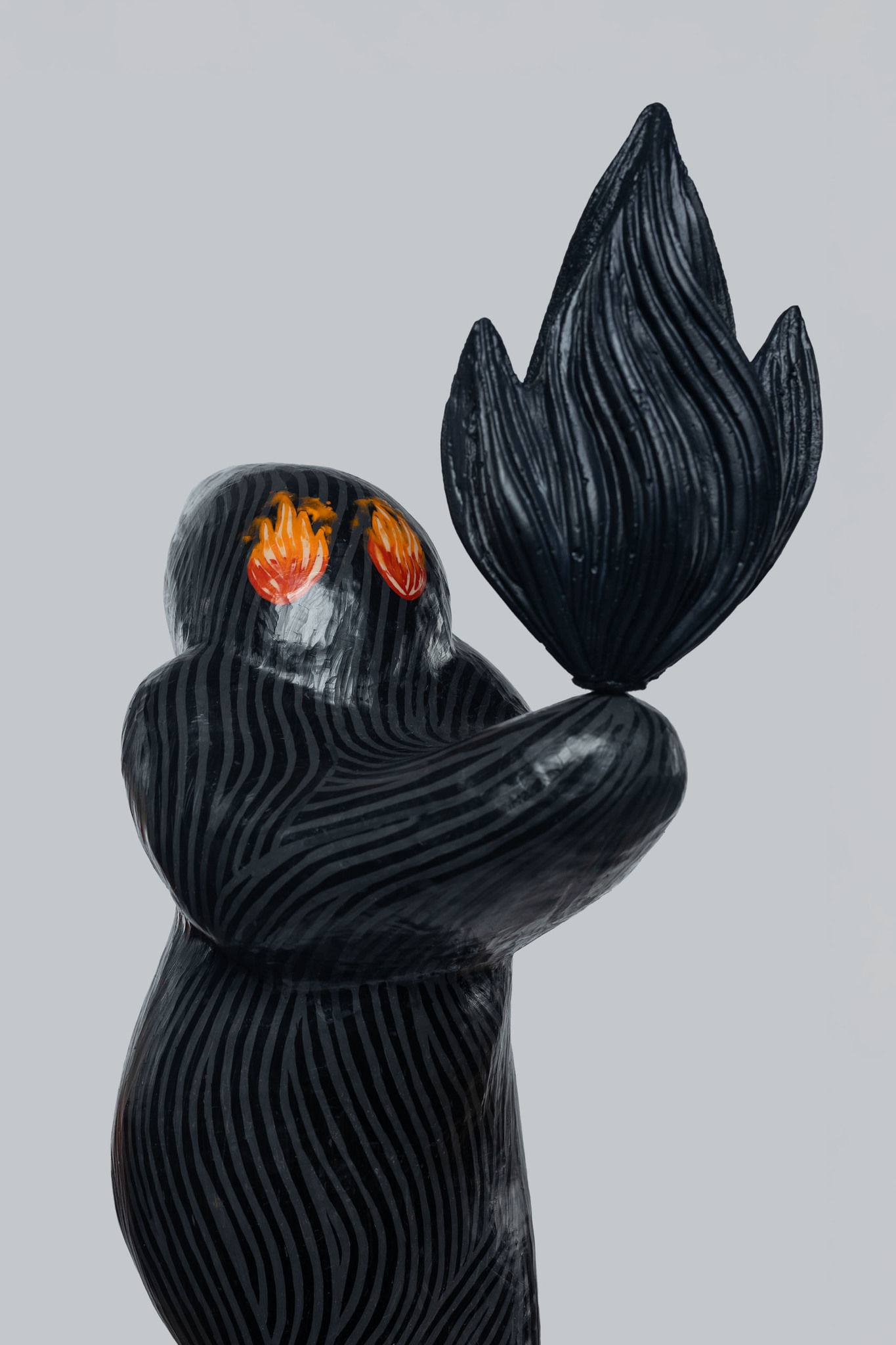 Bartoníčková is currently working mainly with synthetic wax, since beeswax is unfortunately too expensive. She applies the wax with a brush in thin layers on the plaster surface of the sculpture. She then carves grooves in this wax layer, into which she pours different coloured wax which she cleans and smoothes after it hardens. The natural wax itself is honey-toned, but can be coloured very easily, which is another important characteristic. Artistically wax has become the ideal material for Bartoníčková, though its thermal properties make it suitable only for interiors.