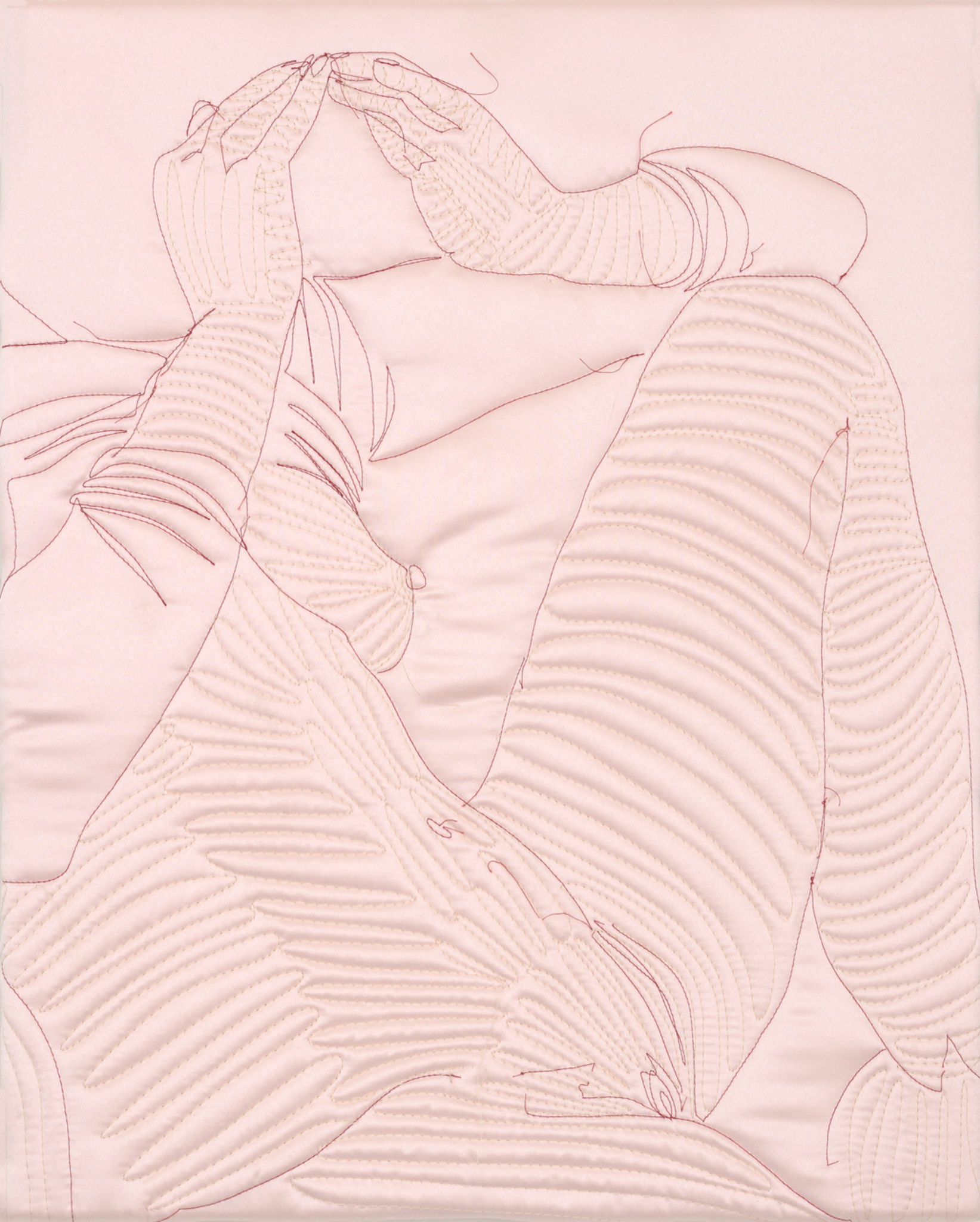 Lucie Rosická's work explores the intersection between traditional and contemporary techniques. Her works are a mixture of the hand-making that her grandmother taught her, classical painting and her newfound passion for fabrics and materials. The result is a unique style of figurative art that evokes personal memories and emotions. She completed a work placement in Turin, Italy, where she discovered the rich history of materials and fashion. This experience stimulated her interest in elevating textile techniques to fine art. In addition, she participated in a residency in New York where she found the freedom to experiment and develop her own artistic vision. To create her characters, she uses various fabrics, from high-end materials to found fabrics from second-hand shops. Through this medium, she is able to capture the essence of a place or moment in time and convey her personal experiences. She believes that the tactile nature of fabrics allows for a more intimate connection with the viewer, as everyone has a personal relationship with textiles.