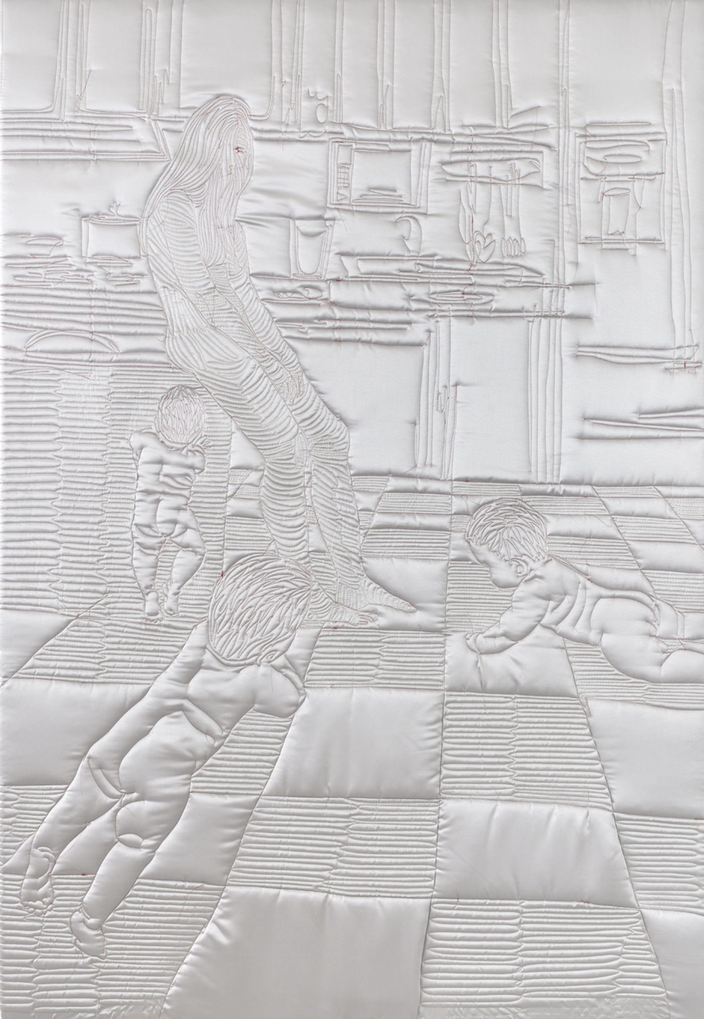 Lucie Rosická's work explores the intersection between traditional and contemporary techniques. Her works are a mixture of the hand-making that her grandmother taught her, classical painting and her newfound passion for fabrics and materials. The result is a unique style of figurative art that evokes personal memories and emotions. She completed a work placement in Turin, Italy, where she discovered the rich history of materials and fashion. This experience stimulated her interest in elevating textile techniques to fine art. In addition, she participated in a residency in New York where she found the freedom to experiment and develop her own artistic vision. To create her characters, she uses various fabrics, from high-end materials to found fabrics from second-hand shops. Through this medium, she is able to capture the essence of a place or moment in time and convey her personal experiences. She believes that the tactile nature of fabrics allows for a more intimate connection with the viewer, as everyone has a personal relationship with textiles.