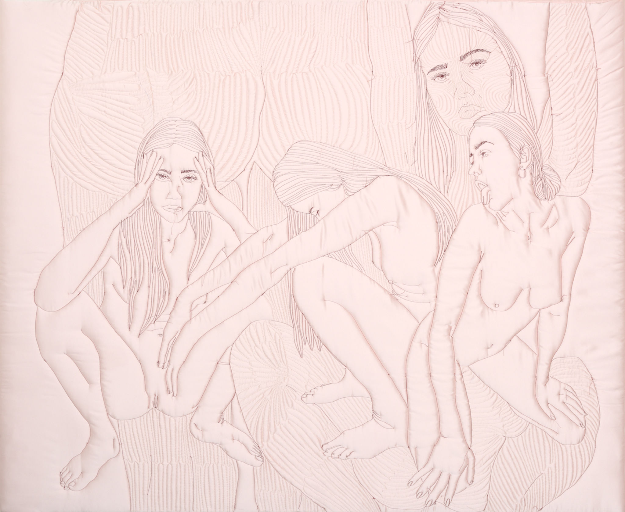 Lucie Rosická's work explores the intersection between traditional and contemporary techniques. Her works are a mixture of the hand-making that her grandmother taught her, classical painting and her newfound passion for fabrics and materials. The result is a unique style of figurative art that evokes personal memories and emotions. She completed a work placement in Turin, Italy, where she discovered the rich history of materials and fashion. This experience stimulated her interest in elevating textile techniques to fine art. In addition, she participated in a residency in New York where she found the freedom to experiment and develop her own artistic vision. To create her characters, she uses various fabrics, from high-end materials to found fabrics from second-hand shops. Through this medium, she is able to capture the essence of a place or moment in time and convey her personal experiences. She believes that the tactile nature of fabrics allows for a more intimate connection with the viewer, as everyone has a personal relationship with textiles.
