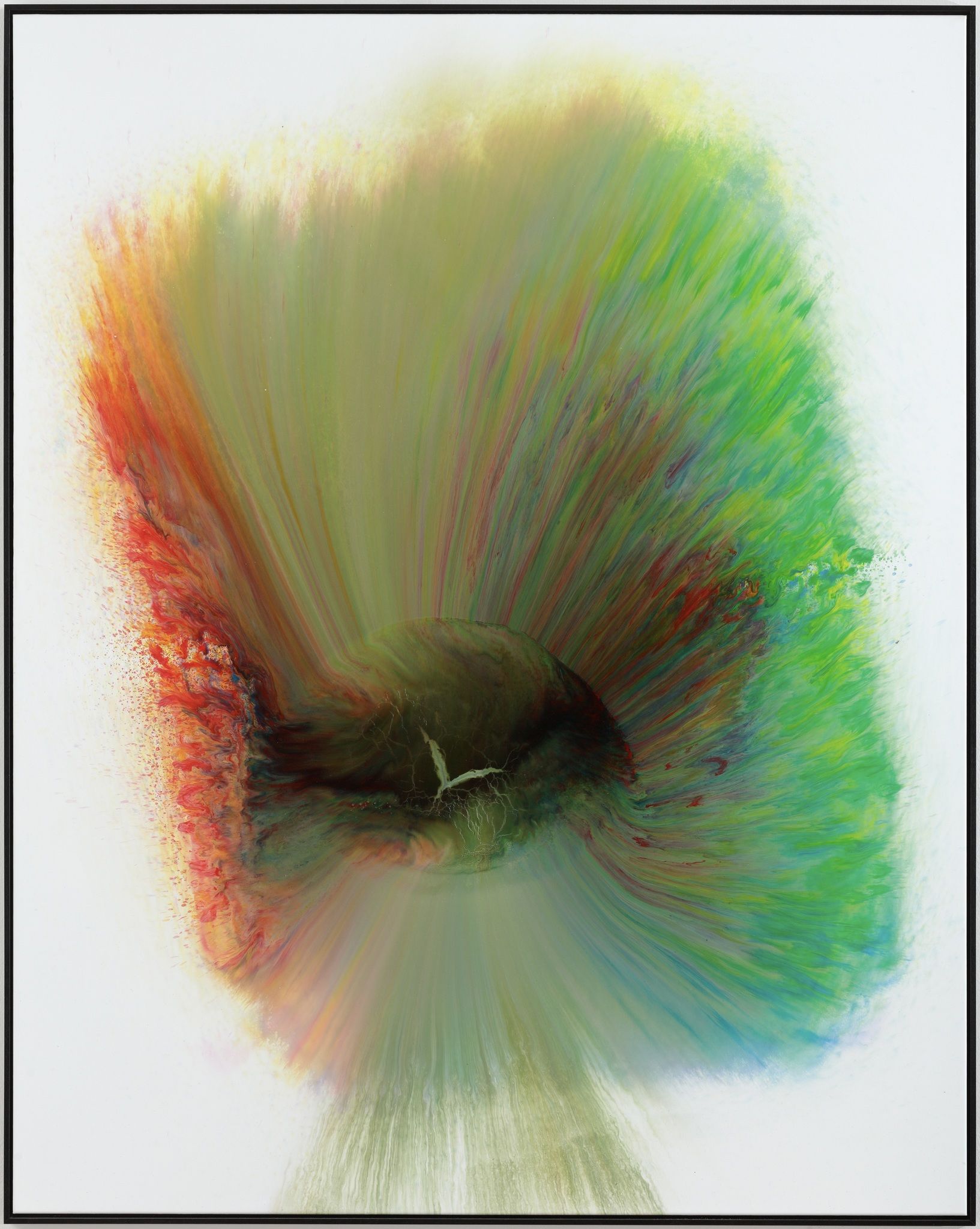A graduate of the Academy of Fine Arts in Prague (1999–2005, monumental art, prof. Aleš Veselý), Jakub Roztočil works with generative processes in real time, through which he recreates fundamental aspects of the universe. The dialogue between the mechanical and biological world produces an image that simulates a shared and interconnected parallel to nature, music, and – in the end effect – the universe itself. Roztočil creates his paintings by applying layers of paint on a rotating canvas using a homemade mechanism. In interaction with musical rhythm, this kinetic machine generates a “visual synthesis,” meaning a graphic record of the harmonic relationship between variously interrelated vibrations. These works can be summed up using three key words: sound – matter – harmony. His sculptures are three-dimensional experiments, and their installation is a prime expression of art itself, for they reveal the fundamental relationships between matter and space, and these are integrated into Roztočil’s attempts at creating a final, balanced work. In 2021, Trafo Gallery published a catalogue of his works titled What’s the Frequency? www.jakubroztocil.cz
