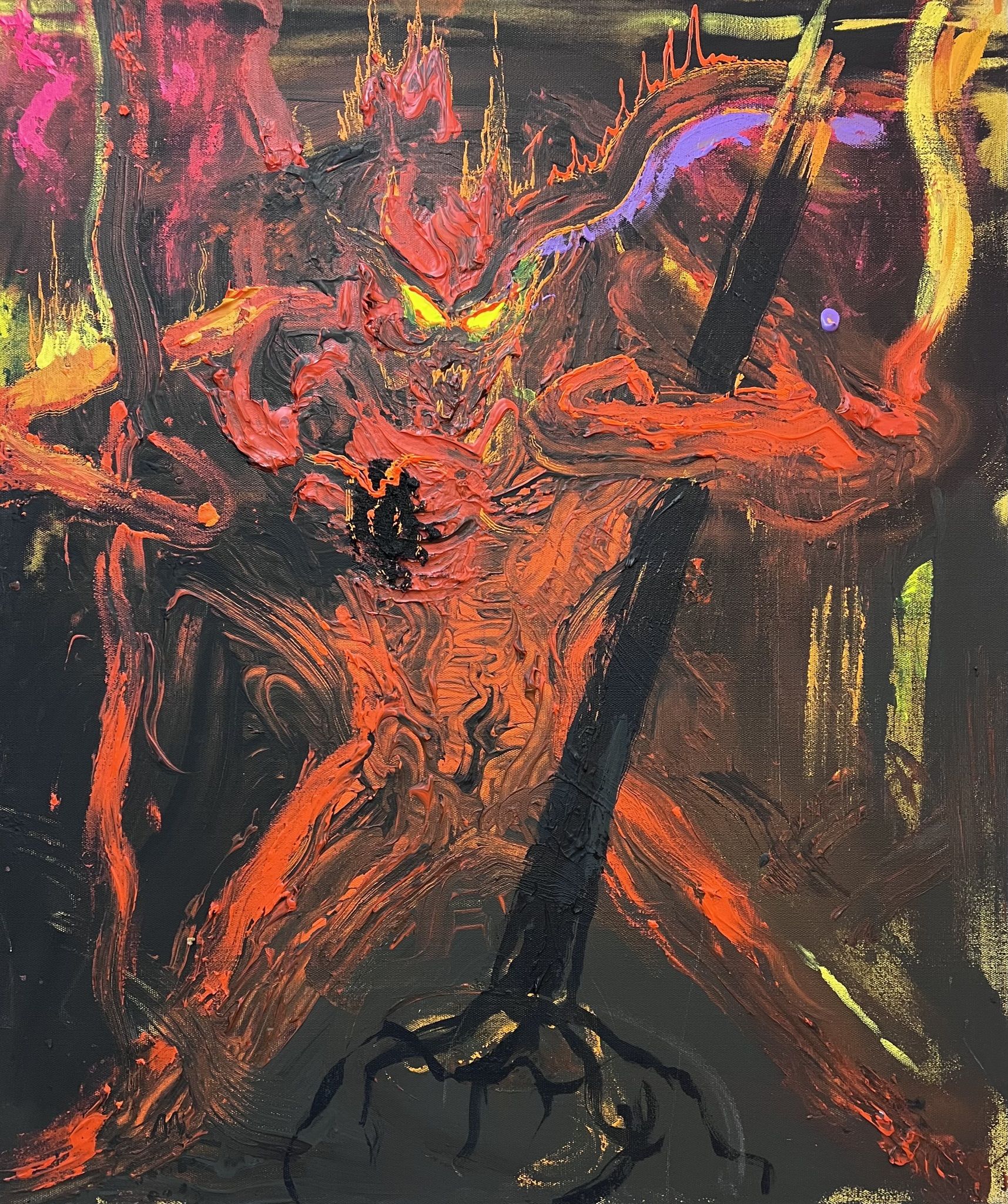 Salajka studied at the Faculty of Fine Art at Brno University of Technology (2002–2005, painting, prof. Petr Veselý) and the Academy of Fine Arts in Prague (2005–2008, painting, prof. Michael Rittstein). “Everything is the same and everything is changing.” This seeming contradiction is the driving force behind his work. The spirits of the long dead wander among living beings in a harmony of terror and awakening. The owl or the wolf, and in his newer paintings the chameleon, are symbols that naturally refer to Darwin and Brehm as much as they do to ancient mythology or pagan legends. Salajka applies his own personal rules, colors, shapes, and narrative language to his work. His recent paintings are characterized by increasingly tight structures and compositions. He is capable of working on a monumental scale, often experimenting with distinctive and contrasting colors. In 2020, Trafo Gallery published a catalogue for his exhibition Neurosis. www.martinsalajka.cz