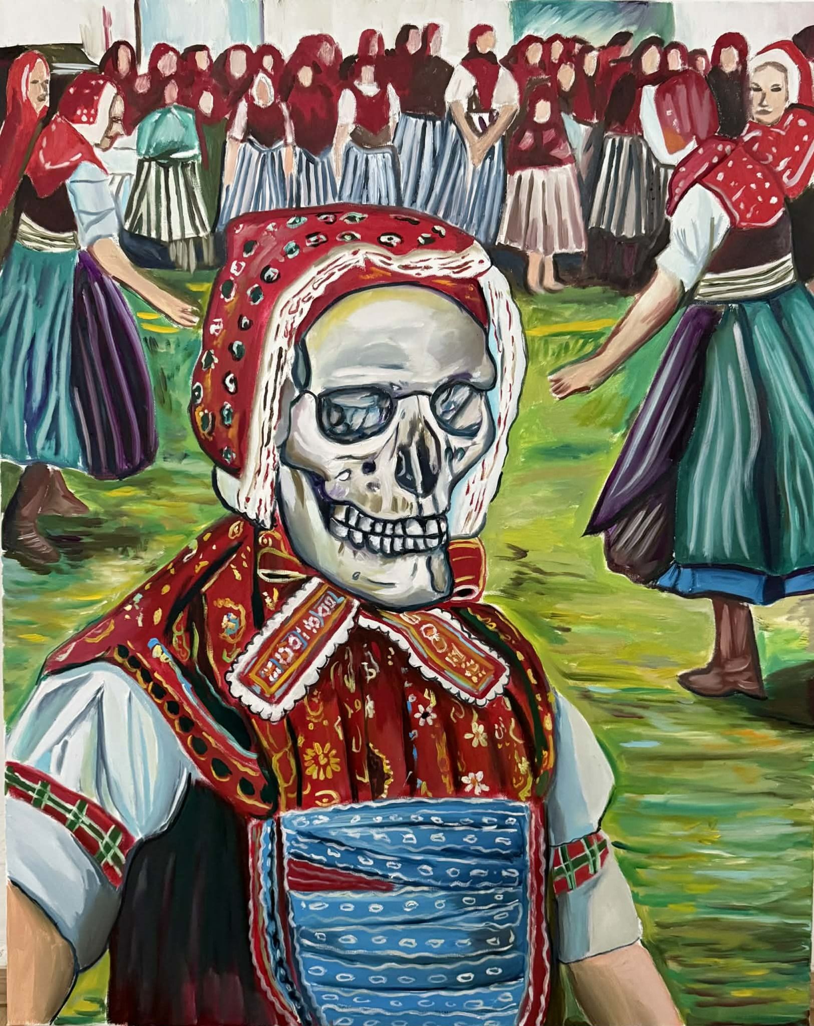 A graduate of Ostrava University’s Faculty of Fine Arts and Music (2005–2010, new media, prof. Jiří Surůvka), Jan Vytiska creates paintings within the context of contemporary Czech painting’s specific pop-surrealist tendencies. Inspired by the aesthetics of street art and executed using a meticulous painting technique, his works are a mix of pop culture, updated elements of rural mythology, and folk culture blended with trash fantasy and elements of anthropological research. He invents anthropomorphic monsters that emerge like phantoms from dreamlike art brut worlds of ancient societies. Aesthetically, however, his eerily frightening stories more closely resemble contemporary animated stories for adults. There are moments of violence, visual shock, and scenes of horror. The scenes remain allegorically unreal but imaginatively specific. In 2017, Trafo Gallery published a catalogue of his work titled Paradise.