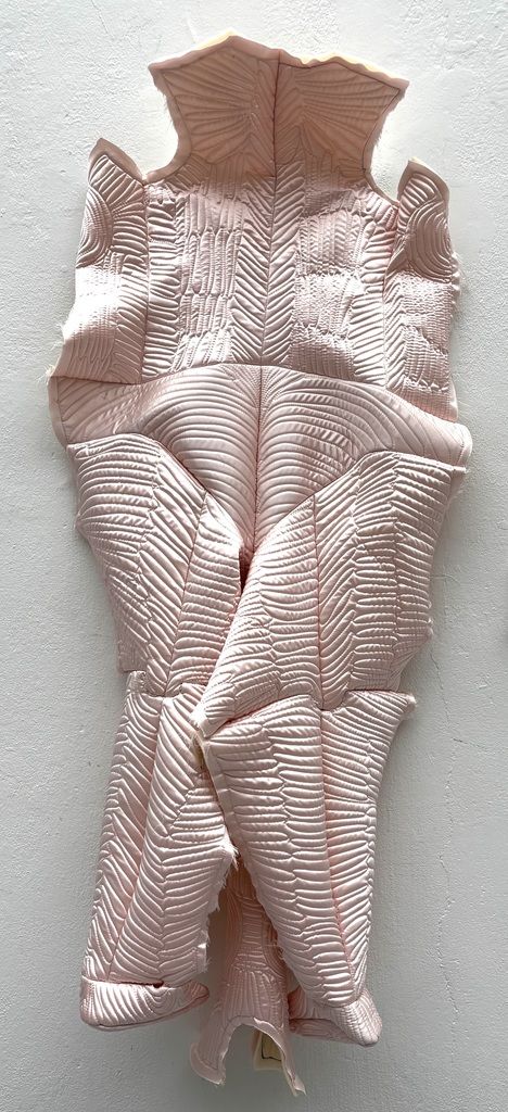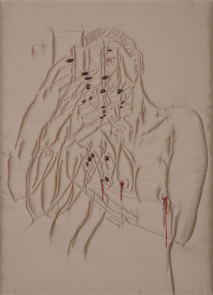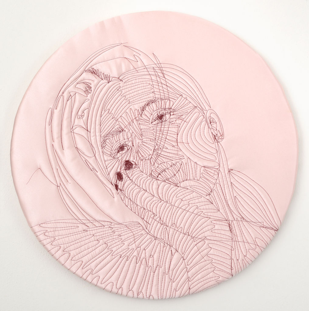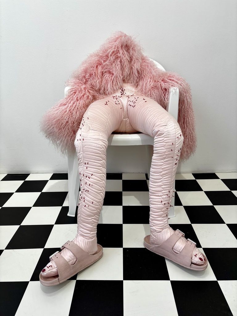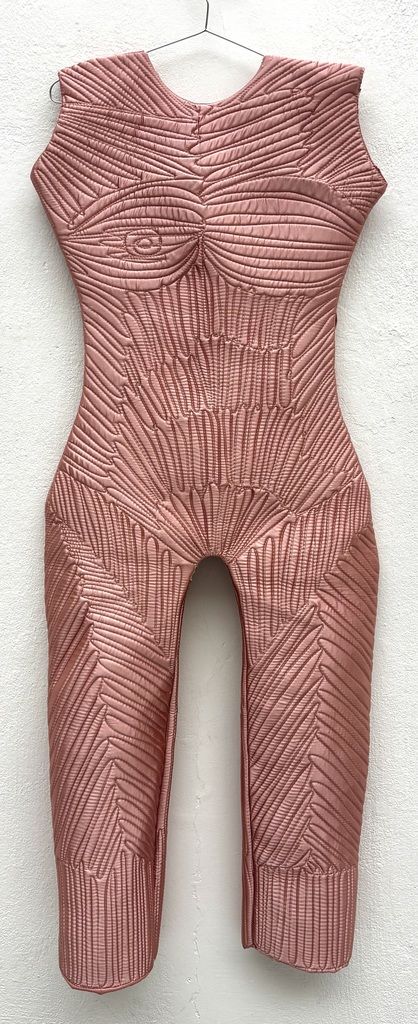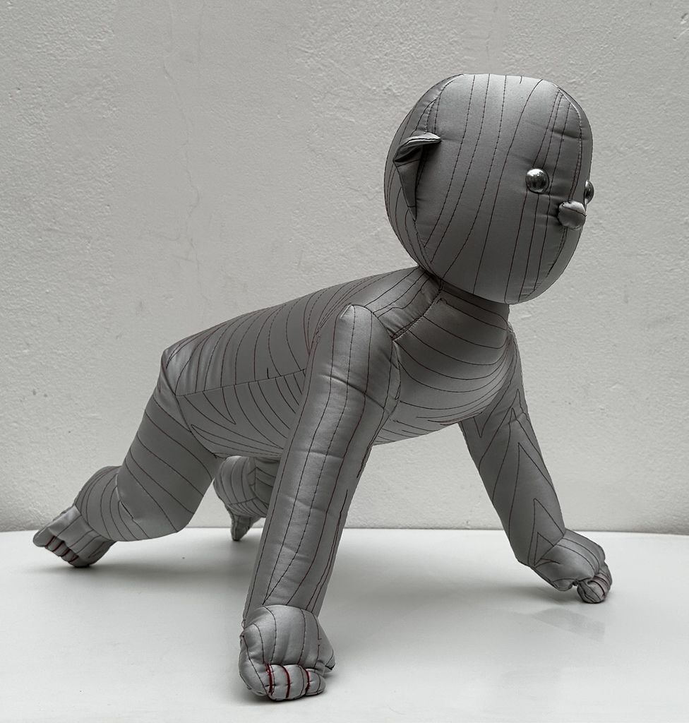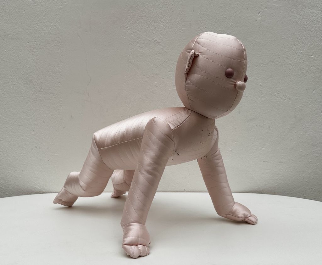 Lucie Rosická's work explores the intersection between traditional and contemporary techniques. Her works are a mixture of the hand-making that her grandmother taught her, classical painting and her newfound passion for fabrics and materials. The result is a unique style of figurative art that evokes personal memories and emotions. She completed a work placement in Turin, Italy, where she discovered the rich history of materials and fashion. This experience stimulated her interest in elevating textile techniques to fine art. In addition, she participated in a residency in New York where she found the freedom to experiment and develop her own artistic vision. To create her characters, she uses various fabrics, from high-end materials to found fabrics from second-hand shops. Through this medium, she is able to capture the essence of a place or moment in time and convey her personal experiences. She believes that the tactile nature of fabrics allows for a more intimate connection with the viewer, as everyone has a personal relationship with textiles.